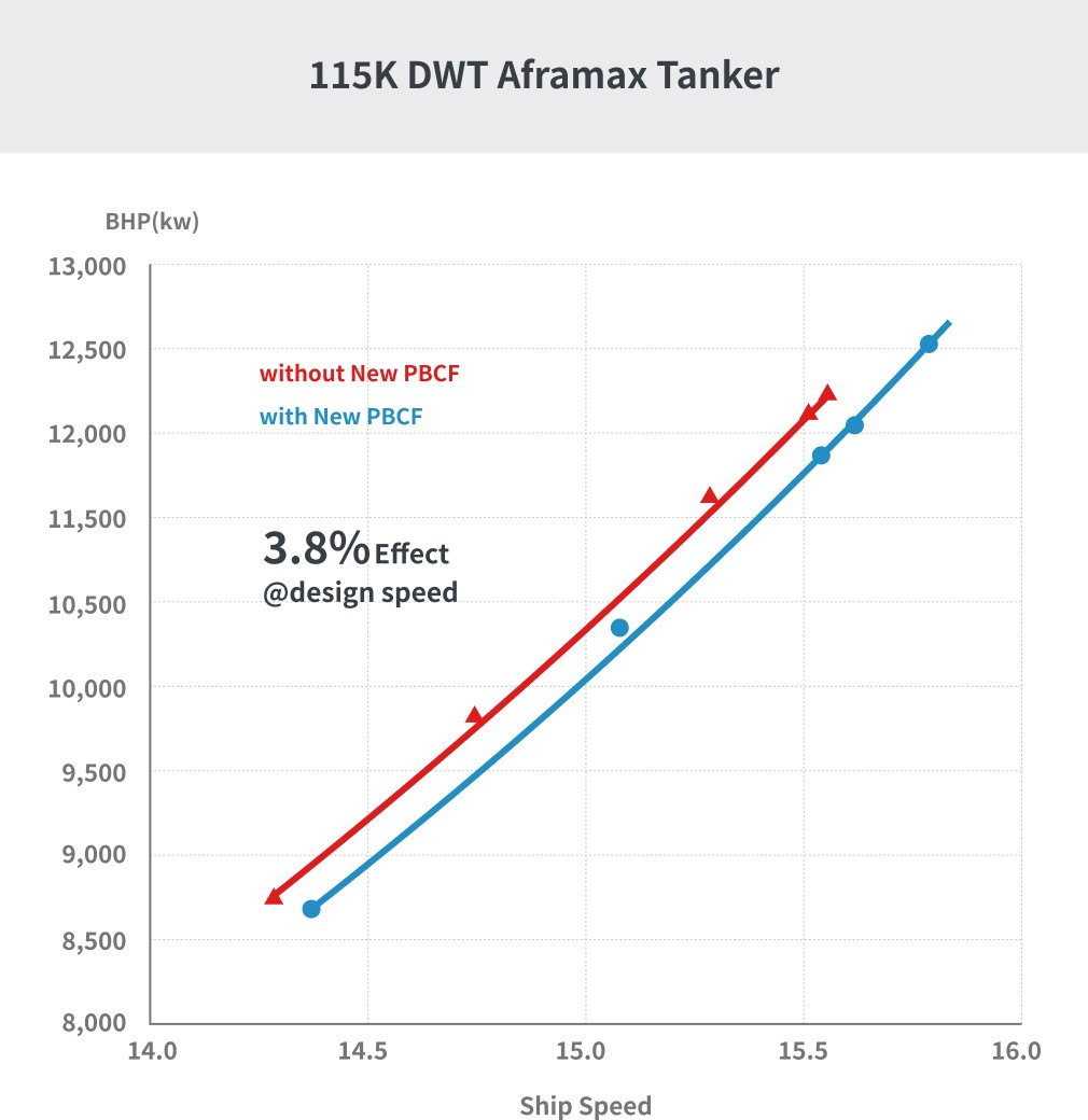 PBCFは、長年にわたる研究開発と実船での検証によって、その効果が確立されています。ここでは、PBCF装着前後または同型船でのPBCF装着船と未装着船の比較による実船解析例をご紹介します。